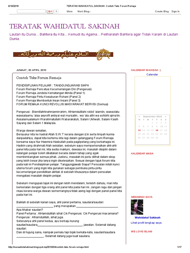 Teratak Wahidatul Sakinah Contoh Teks Forum Remaja Pdf